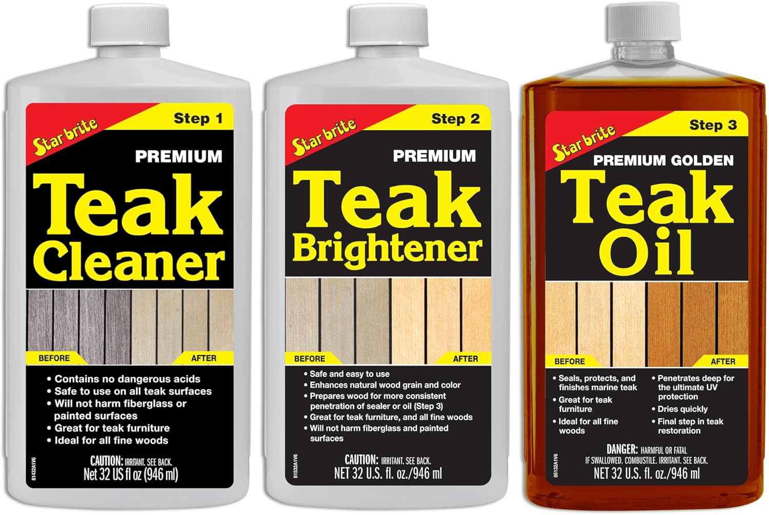 STAR BRITE Teak Kit - Restore Decks, Patio, Outdoor Furniture, Boats & Fine Wood - Marine Grade Teak Cleaner & Brightener Set With Premium Golden Teak Oil Finish - Renew, Refinish & Protect (081202)