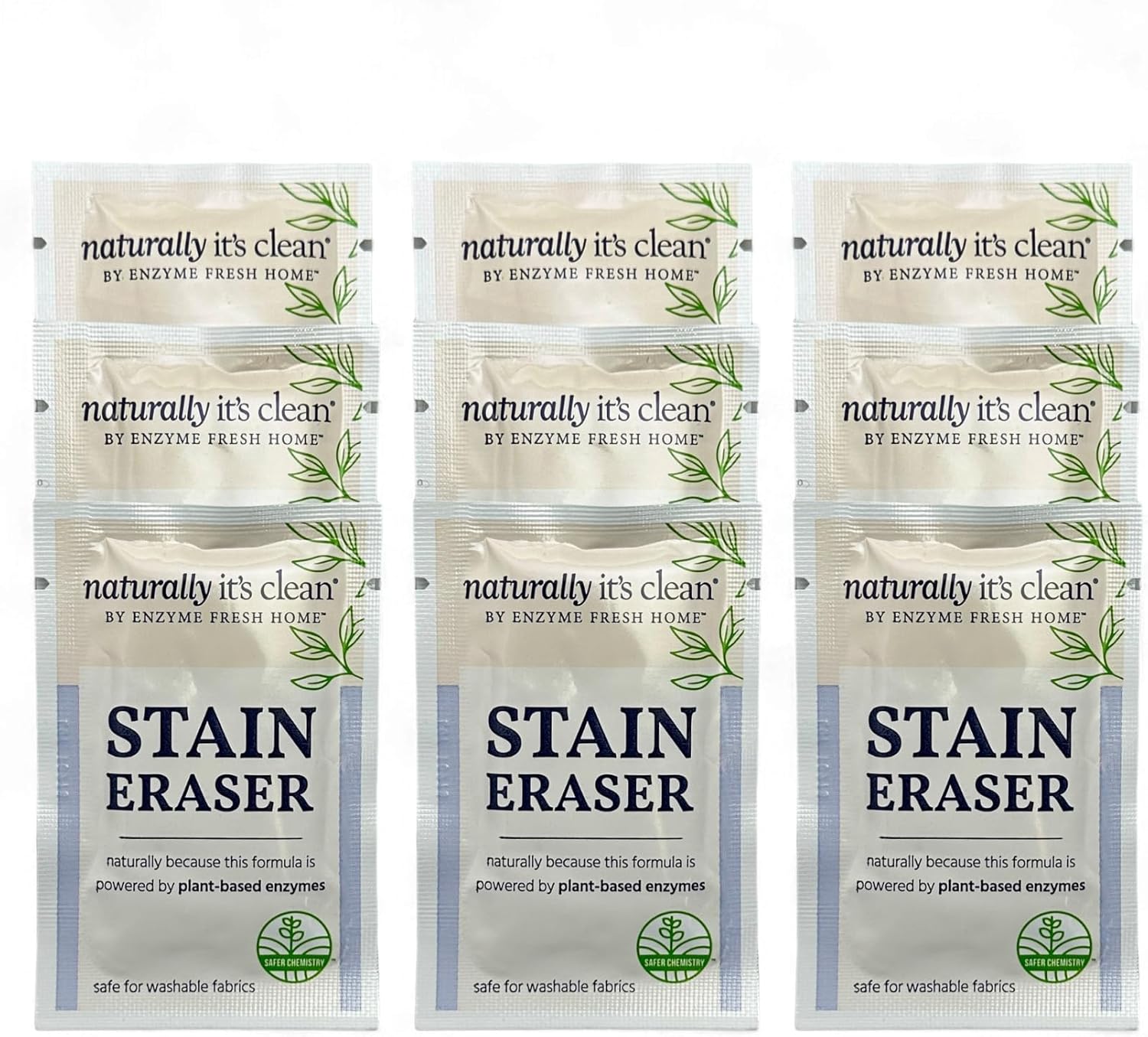 - GET CONVENIENT STAIN REMOVAL ANYWHERE YOU GO. Keep our individually wrapped Stain Eraser towelettes in your purse, pocket, backpack, suitcase and office. Fabrics dry without leaving behind a ring or chemical residue.