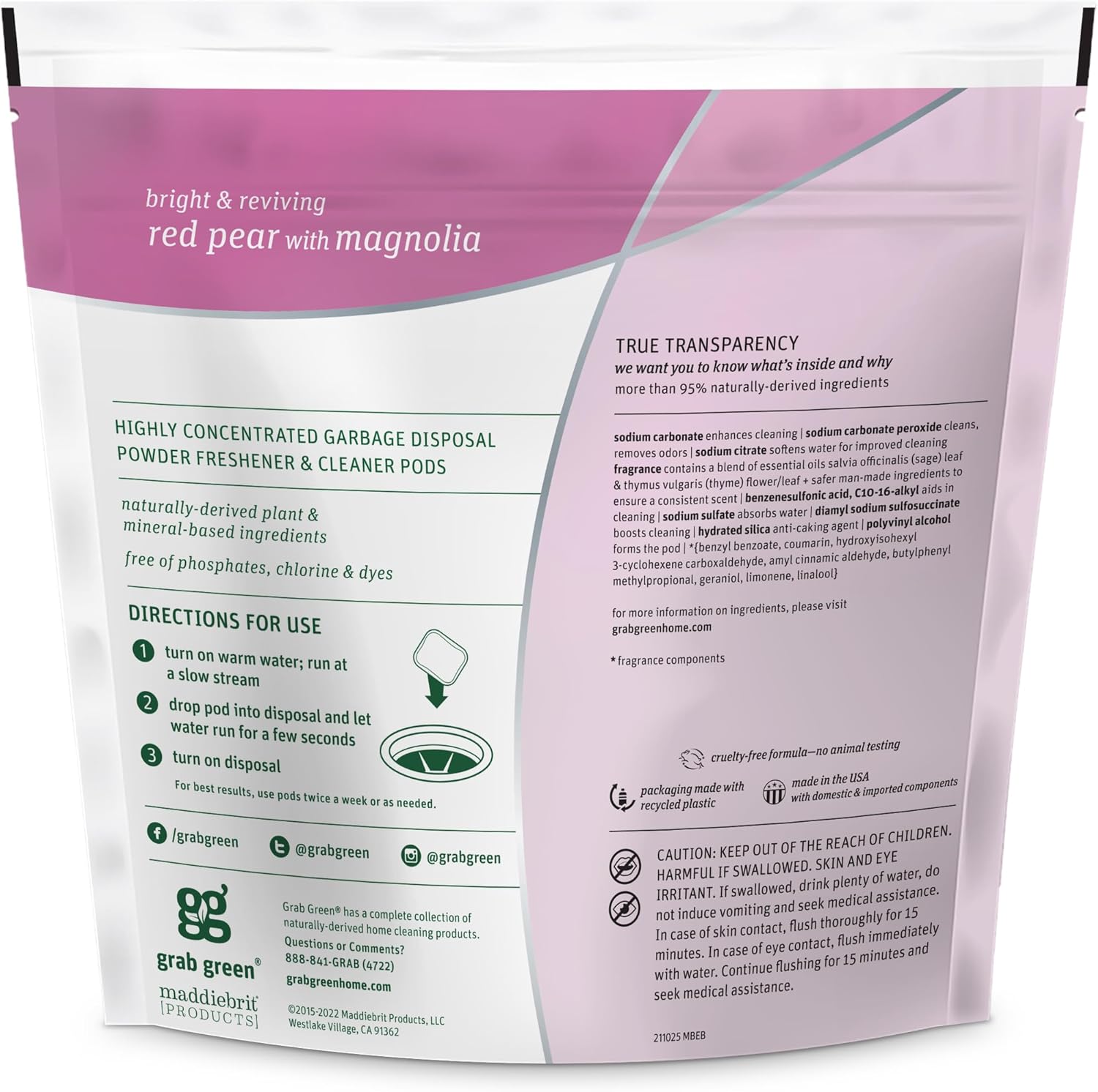 - Contains 1 - 12 pod pouch of Grab Green Garbage Disposal Freshener & Cleaner Pods, Thyme + Fig Leaf.