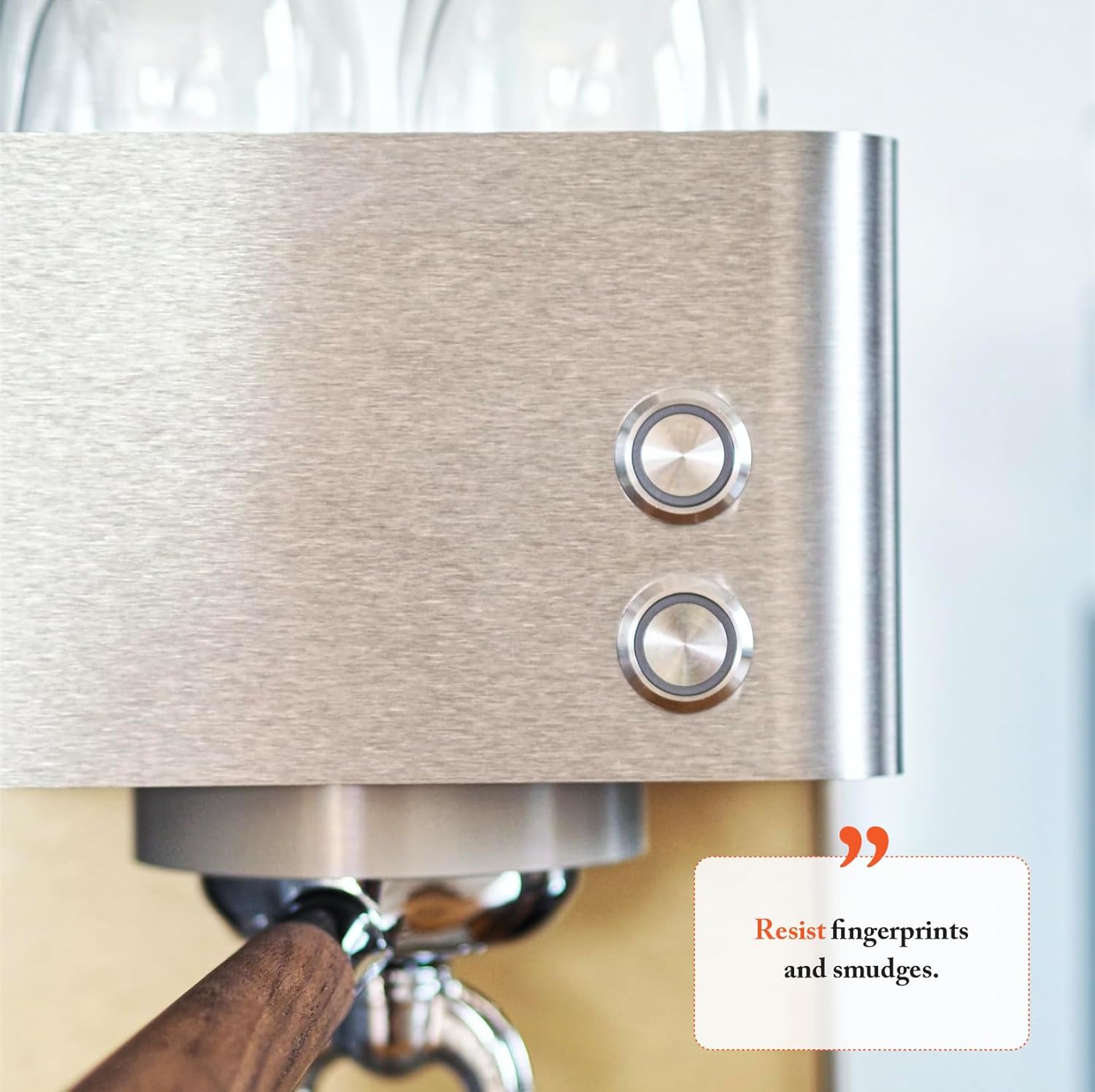 - The micro-thin oil based layer of this stainless steel refrigerator cleaner seals the surface from airborne elements, moisture, and UV light. Virtually eliminating everyday fingerprints, grease, dirt, and smudges, this stainless cleaner leaves behind a gorgeous streak free shine