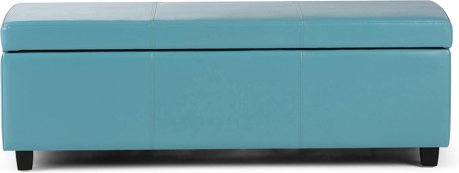 SIMPLIHOME Avalon 48 inch Wide Contemporary Rectangle Storage Ottoman Bench in Soft Blue Vegan Faux Leather, Assembled, For the Living Room, Entryway and Family Room