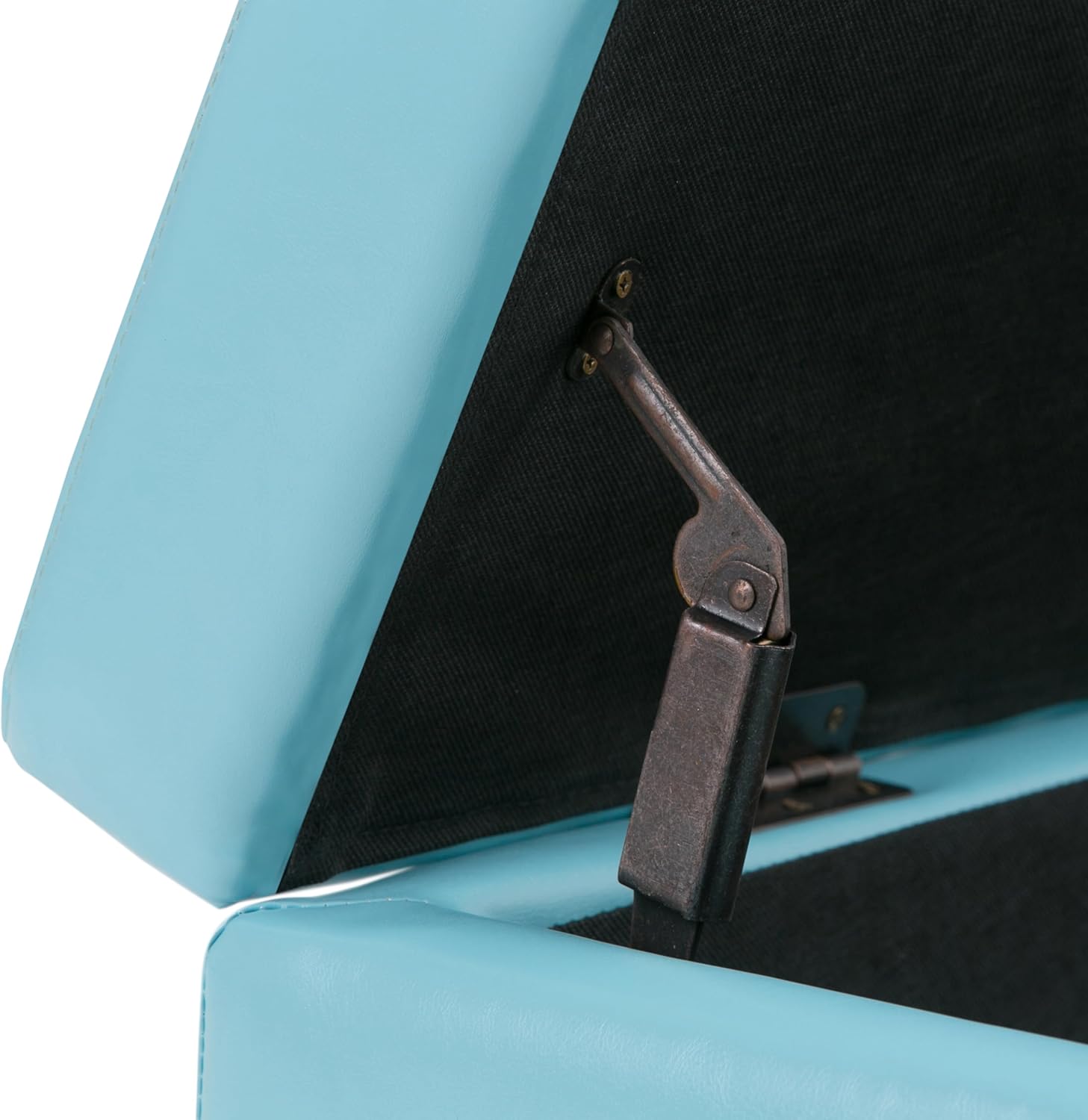 - Upholstered with a durable Soft Blue Vegan Faux Leather