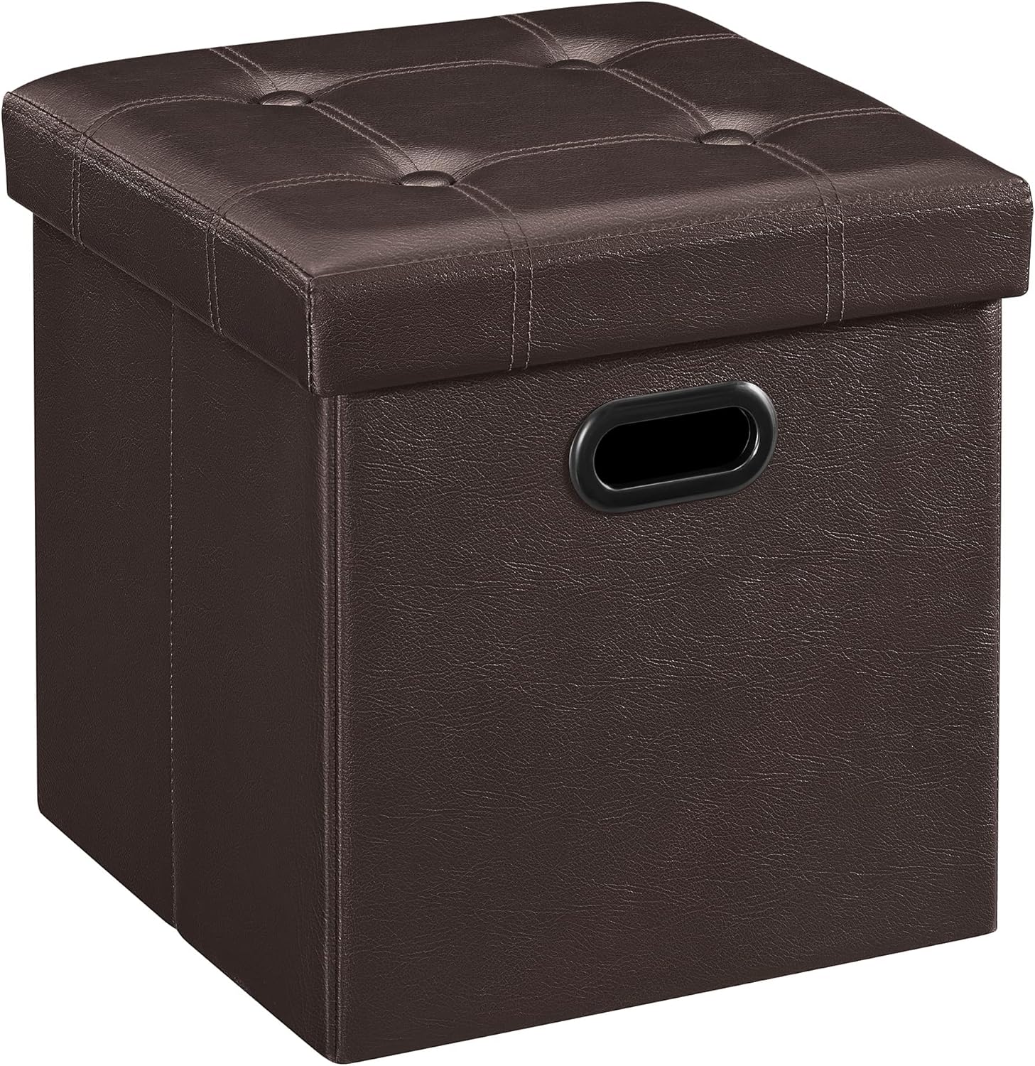 SONGMICS MAZIE Collection - 15 Inches Ottoman with Storage, Footstool, Storage Ottoman with Metal Grommet Handles, Load 660 lb, for Dorm, Living Room, Bedroom, Synthetic Leather, Brown ULSF30Z
