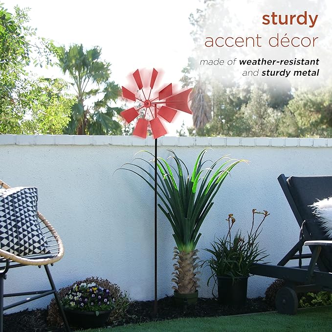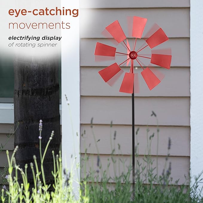 - OUTDOOR GARDEN DECOR: Wind spinner replicates a windmill with 9 metal blades that spin during summer breezes and spring rain showers to provide a unique and charming addition to your exterior décor