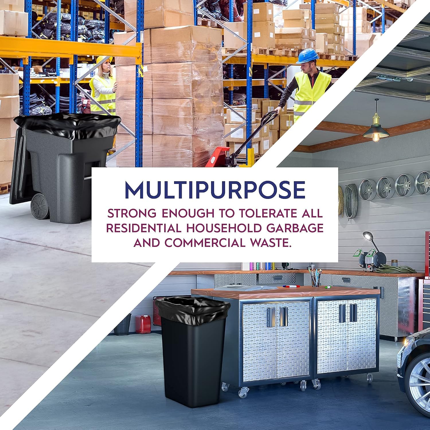 - Strong & Tear-Resistant Trash Bags: Black garbage bags built to handle sharp objects, heavy loads, and everyday waste without ripping. Designed for reliable strength, these trash can bags provide dependable performance at home, in the office, or outdoors.
