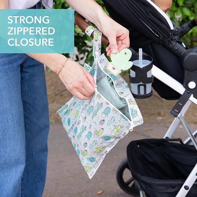 Bumkins Waterproof Wet Bag for Baby, Travel, Swim Suit, Cloth Diapers, Pump Parts, Pool, Beach, Gym Clothes, Toiletry, Hook to Stroller, Daycare, Zipper Reusable Wetdry Packing Pouch, Cactus Green