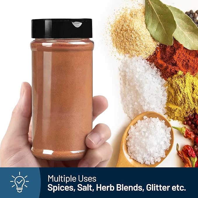 - Multi-Purpose: Our clear plastic jars are perfect for storing dried spices, salt, peppers, seasonings, herb blends, powder, glitter, bath salts, crafts, etc.