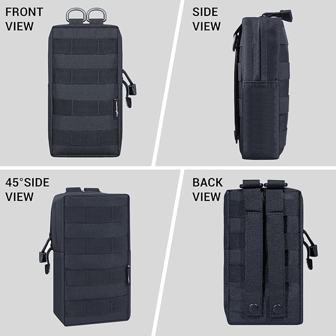 - The molle attachment bag with 2 buckle straps on the back could be attached to tactical backpack, combat vest or other tactical gears as an extra exterior pouch or carry it as a normal pouch to secure essential gears.