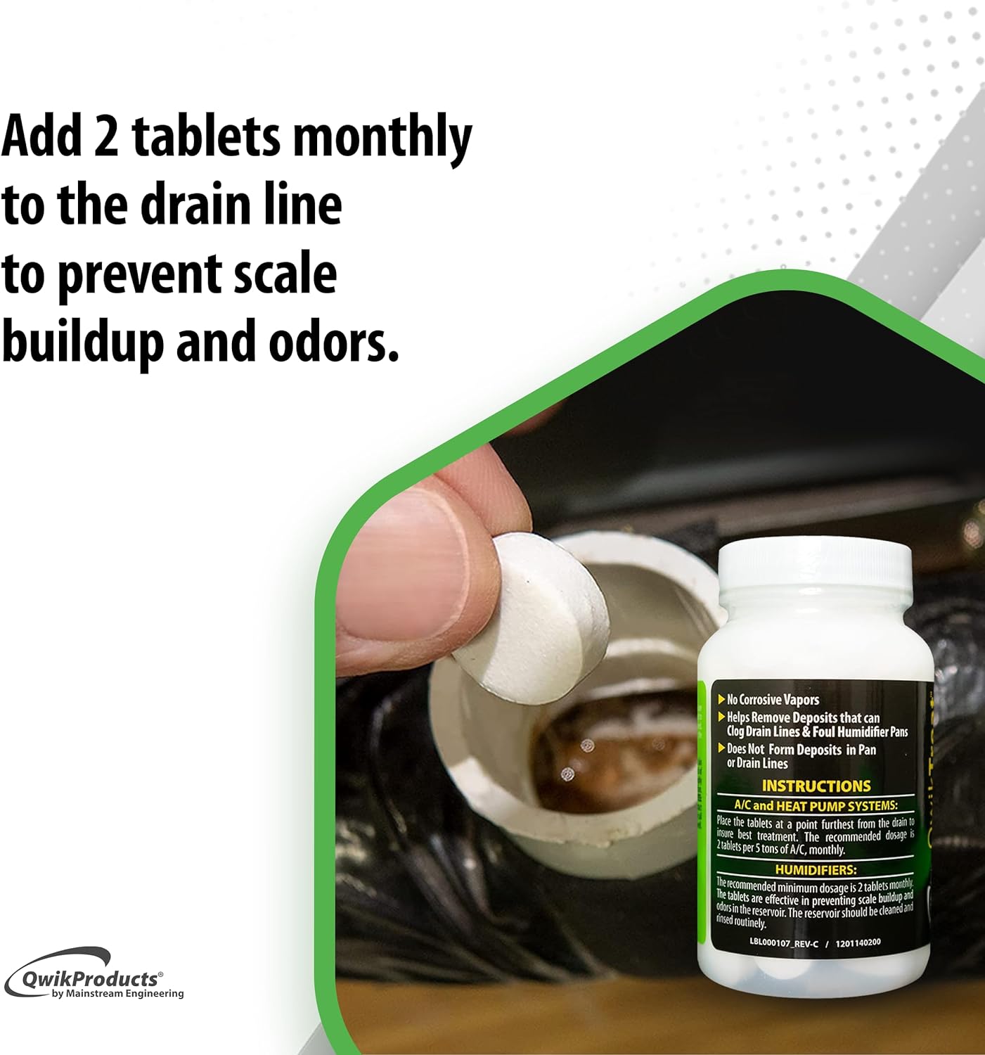 QwikTreat Condensate Pan Treatment Tablets, AC Drip Pan Tablets Air Conditioner Drain Line Cleaner, Control Odors, Overflow and Water Damage, 100 Tablets