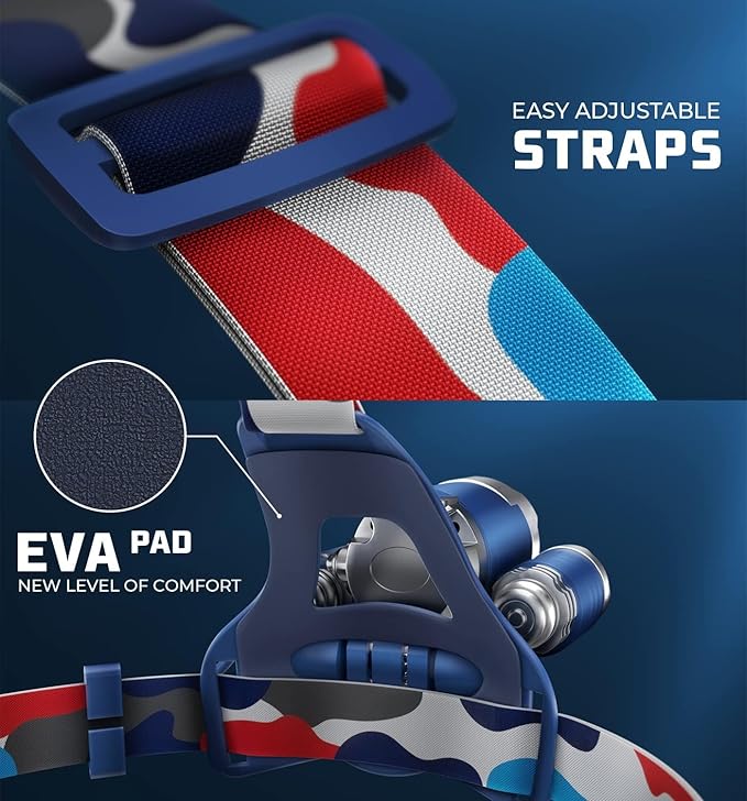 - CUSTOM MADE COMFORT โ This head lamp isnโt just tough, itโs also designed for maximum comfort. Enjoy temperature control, thanks to the sweat-resistant headband. Its adjustable sizing makes it a custom made head light for your head.