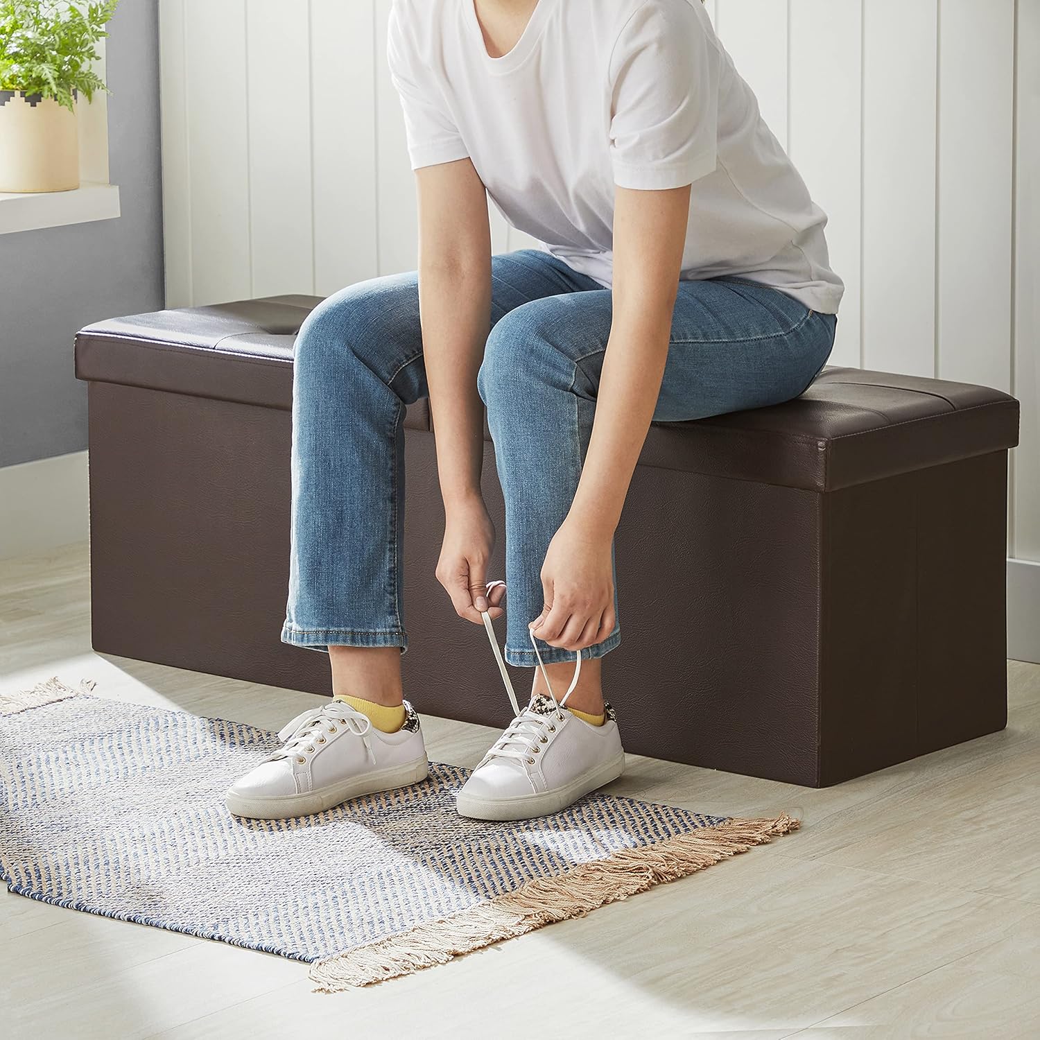 SONGMICS MAZIE Collection - 43 Inches Storage Ottoman Bench with Flipping Lid, Storage Chest with Iron Frame Support, Load 660 lb, for Living Room, Bedroom, Synthetic Leather, Brown ULSF75BR