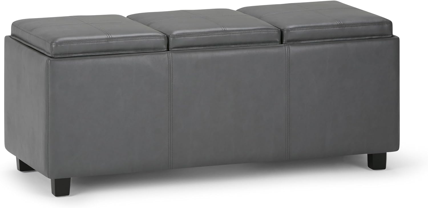 SIMPLIHOME Avalon 42 inch Wide Contemporary Rectangle Storage Ottoman in Stone Grey Vegan Faux Leather, Assembled, For the Living Room, Entryway and Family Room