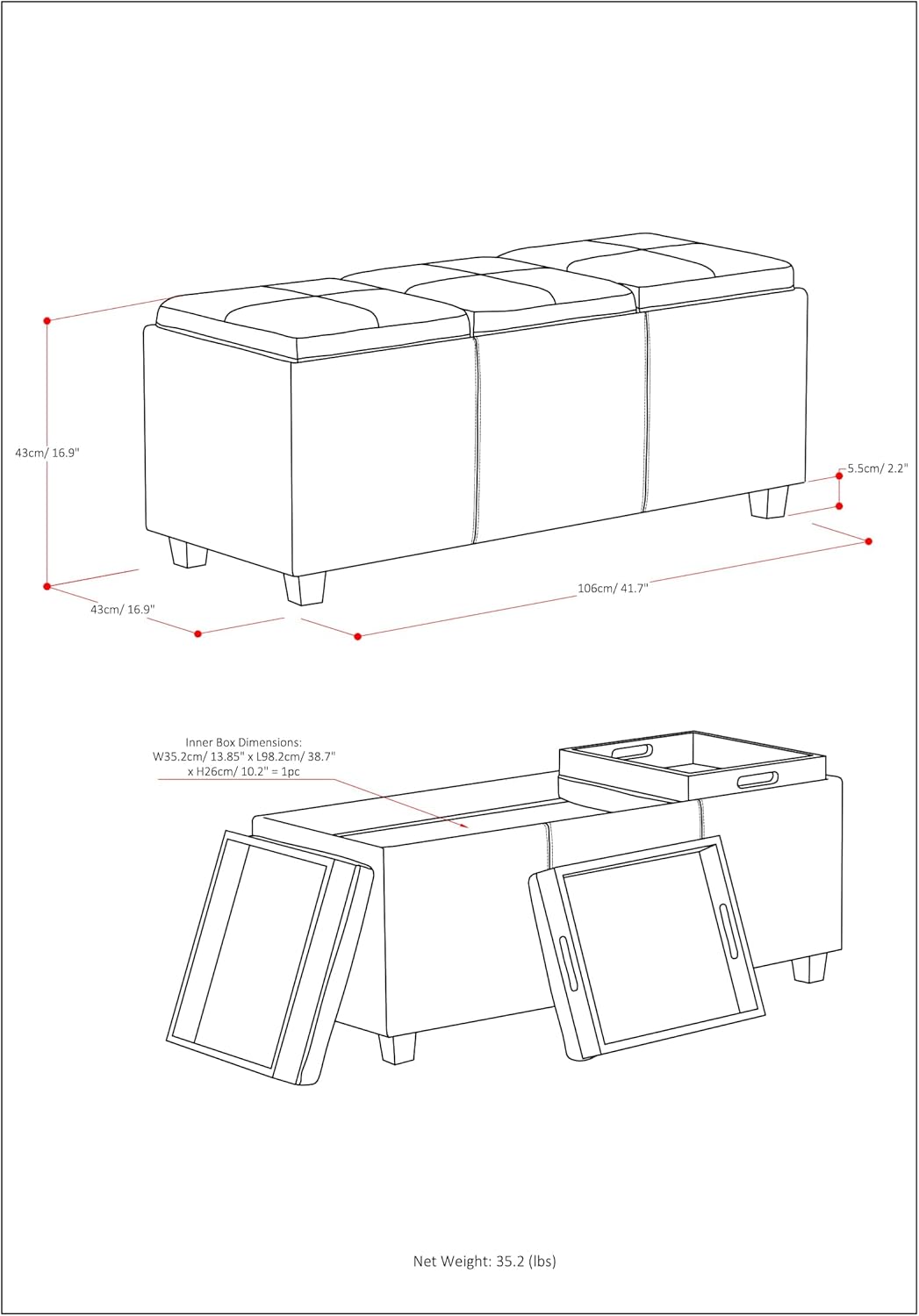 - DIMENSIONS: 42"W x17"D x 17"H
