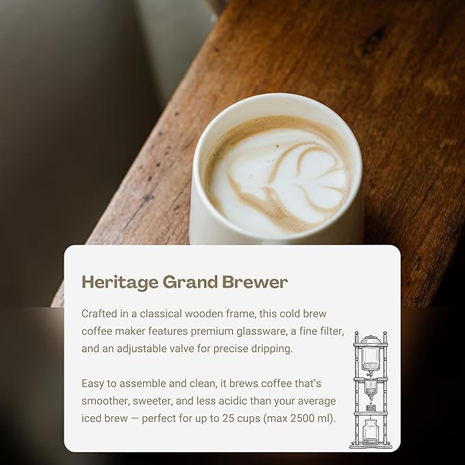 Nispira Cold Brew Drip Tower Iced Coffee Maker Glass Wooden Stand 25 Cups white