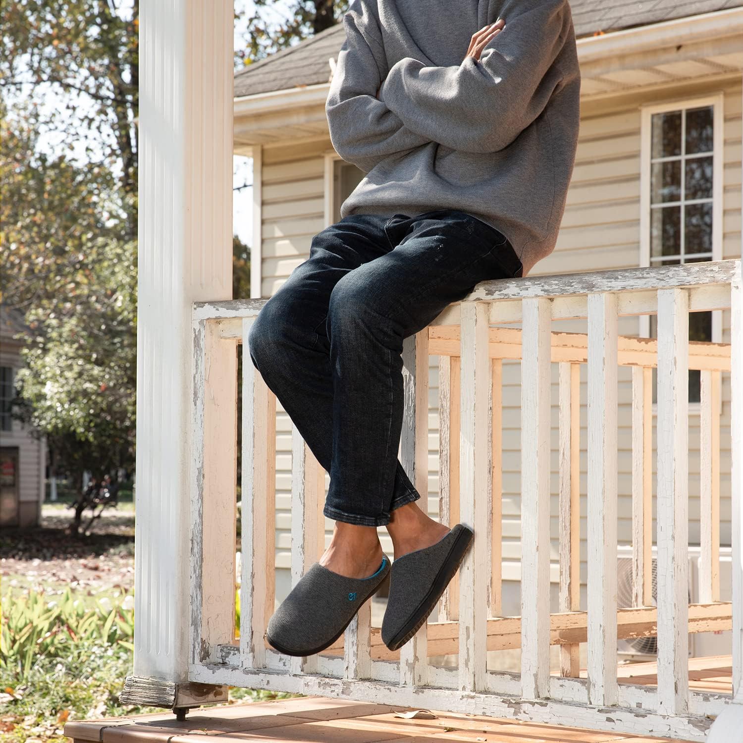 VeraCosy Men's Two-Tone Memory Foam House Slippers Indoor Outdoor Durable Rubber Sole