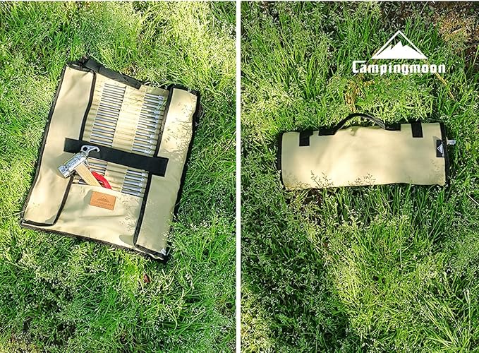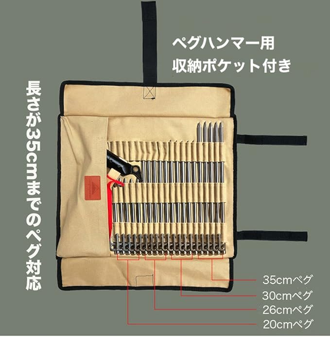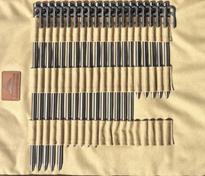 - A Cotton Canvas Storage Bag to GET YOUR TENT STAKES AND HAMMER ORGANIZED:You can put 20pcs of tent stakes and a hammer in this storage bag. Tent stakes should have less than 13.78’’/35cm length. There is a inner pocket for hammer.