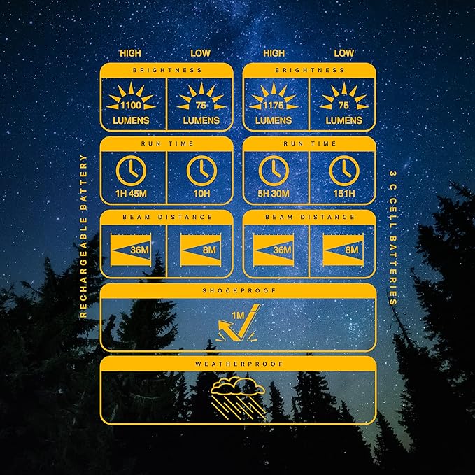 - DUAL BATTERY DESIGN – RECHARGEABLE OR ALKALINE: The dual battery design provides up to 150-hour runtime. This lantern comes with a rechargeable Li-ion battery, but can also operate with standard alkaline batteries in tandem or interchangeably; in case of an emergency. Just add 3 C Cell batteries for the extended run-time! The UL recognized 2000mAH rechargeable battery is included so start your DIY projects or camping adventures immediately!