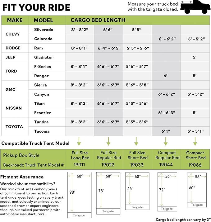 - ▶ A FIT YOU CAN COUNT ON: Napier is proud to partner with world leading automotive manufacturers, working together with their engineers to ensure our tents meet the quality you've come to expect. With 5 models to fit almost every truck on the market, feel confident in choosing Napier for your truck tent camping needs.
