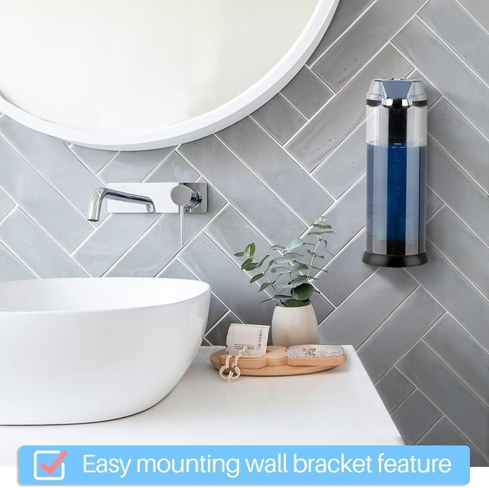 - Attractive and Stylish High Quality black finish with clear soap container can be wall mounted or placed on a countertop