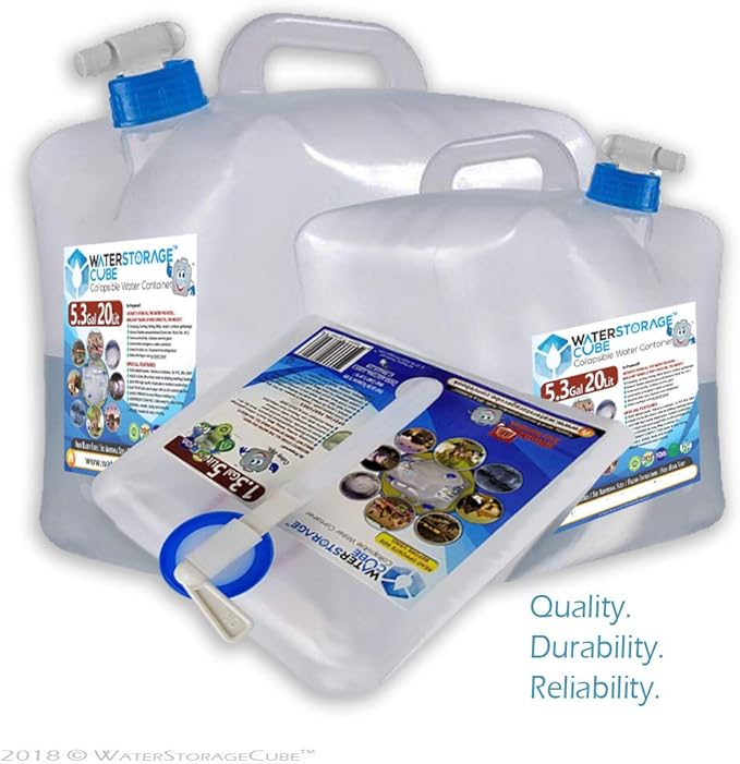 WaterStorageCube BPA Free Collapsible Water Container with Spigot, Camping Water Storage Carrier Jug for Outdoors Hiking Backpack & Survival Kit, Foldable Portable Water Canteen 1.3/2.6/5.3 Gallon