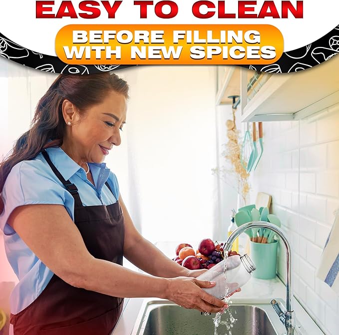- Lightweight Design: These seasoning shaker bottle are excellent for storing spices in kitchen cabinets, or carrying BBQ rub container on the go. These seasoning jars are good for festive baking and cooking. You can also use them as candy bottles