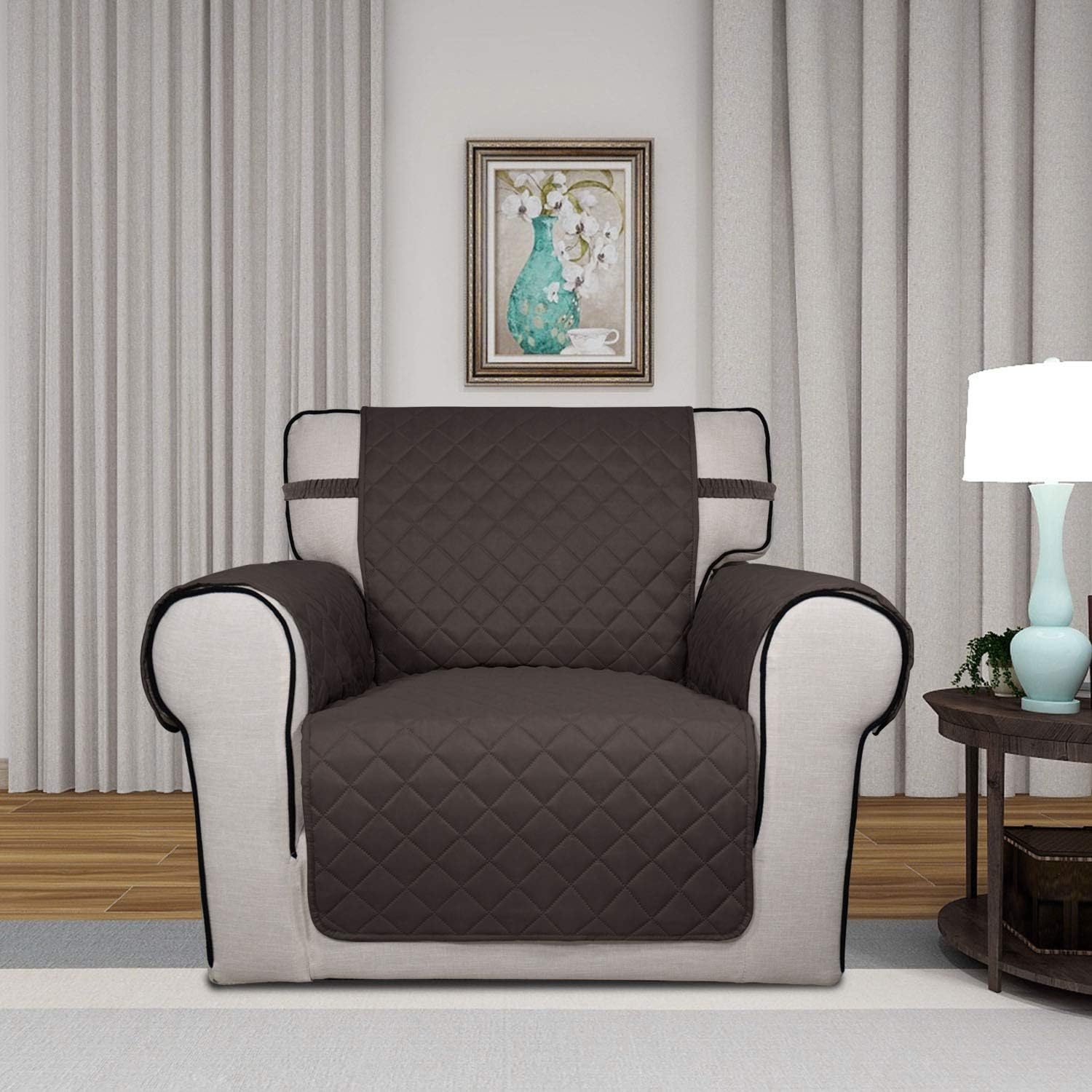 PureFit Reversible Quilted Sofa Cover, Water Resistant Slipcover Furniture Protector, Washable Couch Cover with Non Slip and Elastic Straps for Kids, Dogs, Pets (Chair, Chocolate/Beige)