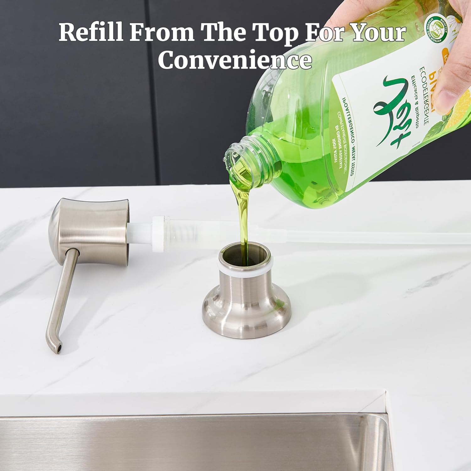 Soap Dispenser for Kitchen Sink Brushed Nickel, Built-in and Refill-from-Top Design with Liquid Hand & Dish Soap Bottle