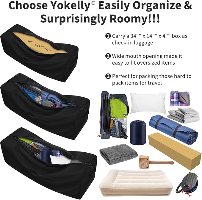 - Large duffle dimensions when full: 36*13*13 inches(L*W*H). Includes 2 web handles on the ends and 1 in the center with a full-length zipper for easy access.