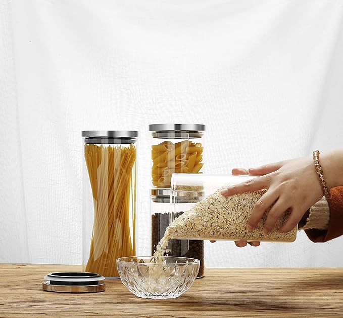 SIXAQUAE Glass Food Storage Containers Jar Stainless Steel Lids 2 Packs 1000ml Airtight Canister Organization Sets Stackable…