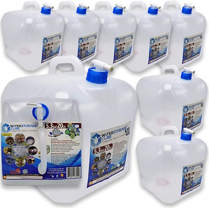WaterStorageCube BPA Free Collapsible Water Container with Spigot, Camping Water Storage Carrier Jug for Outdoors Hiking Backpack & Survival Kit, Foldable Portable Water Canteen 1.3/2.6/5.3 Gallon