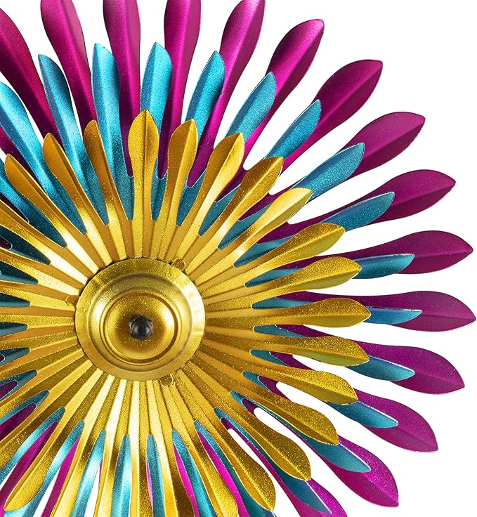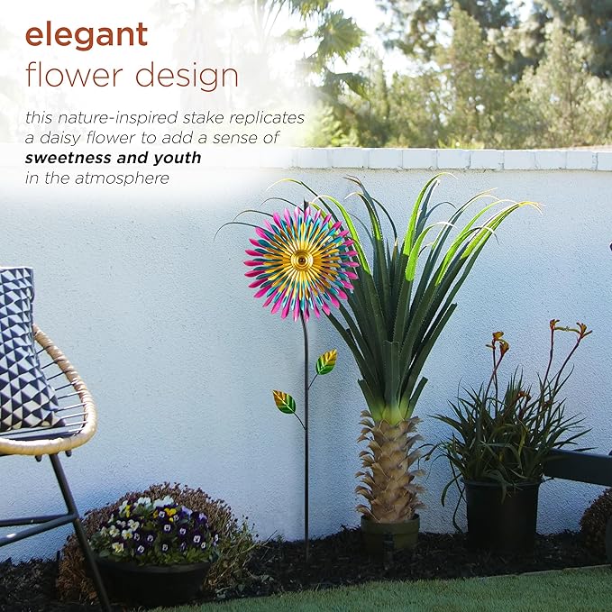 - OUTDOOR GARDEN DÉCOR: Wind spinner replicates a daisy with metal blades that spin during summer breezes and spring rain showers to provide a unique and decorative addition to your exterior décor