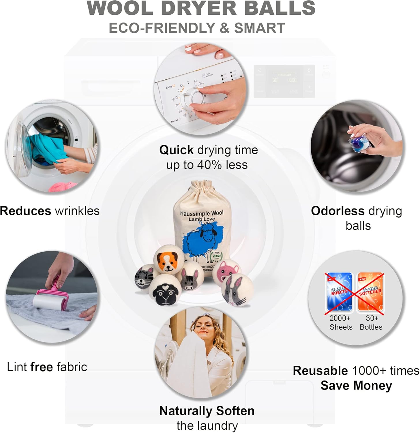 Wool Dryer Balls β 6-Pack XL Organic Fabric Softener | Natural Handmade Sheep Wool | Reusable, Anti-Static, Lint & Wrinkle Remover | Safe for Baby & Sensitive Skin (Farm)