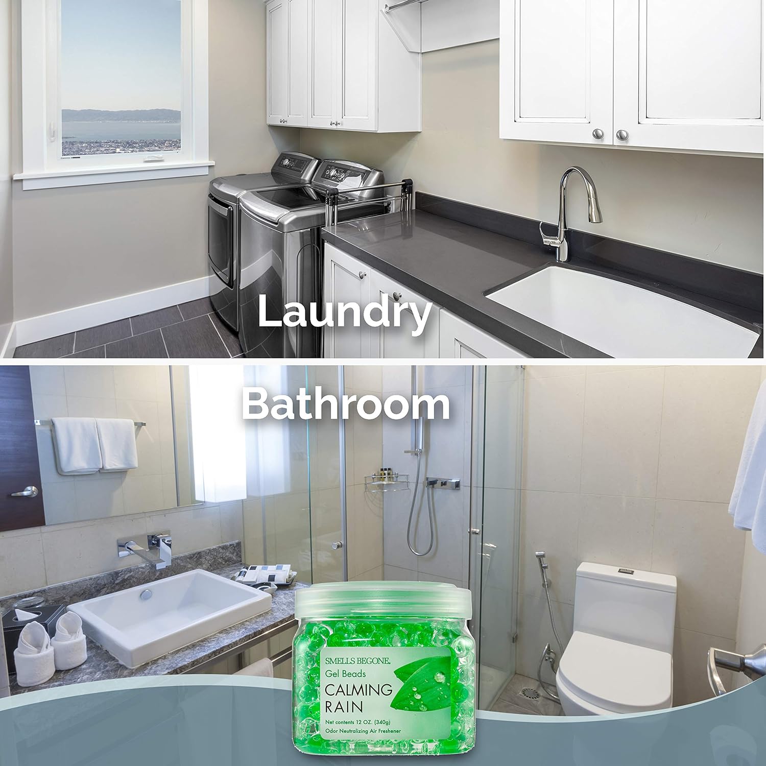 SMELLS BEGONE Odor Eliminator Gel Bead Value Pack - 72 oz - Air Freshener Eliminates Odors in Bathrooms, Pet Areas, Boats, RVs & Cars - Made with Essential Oils - Calming Rain Scent