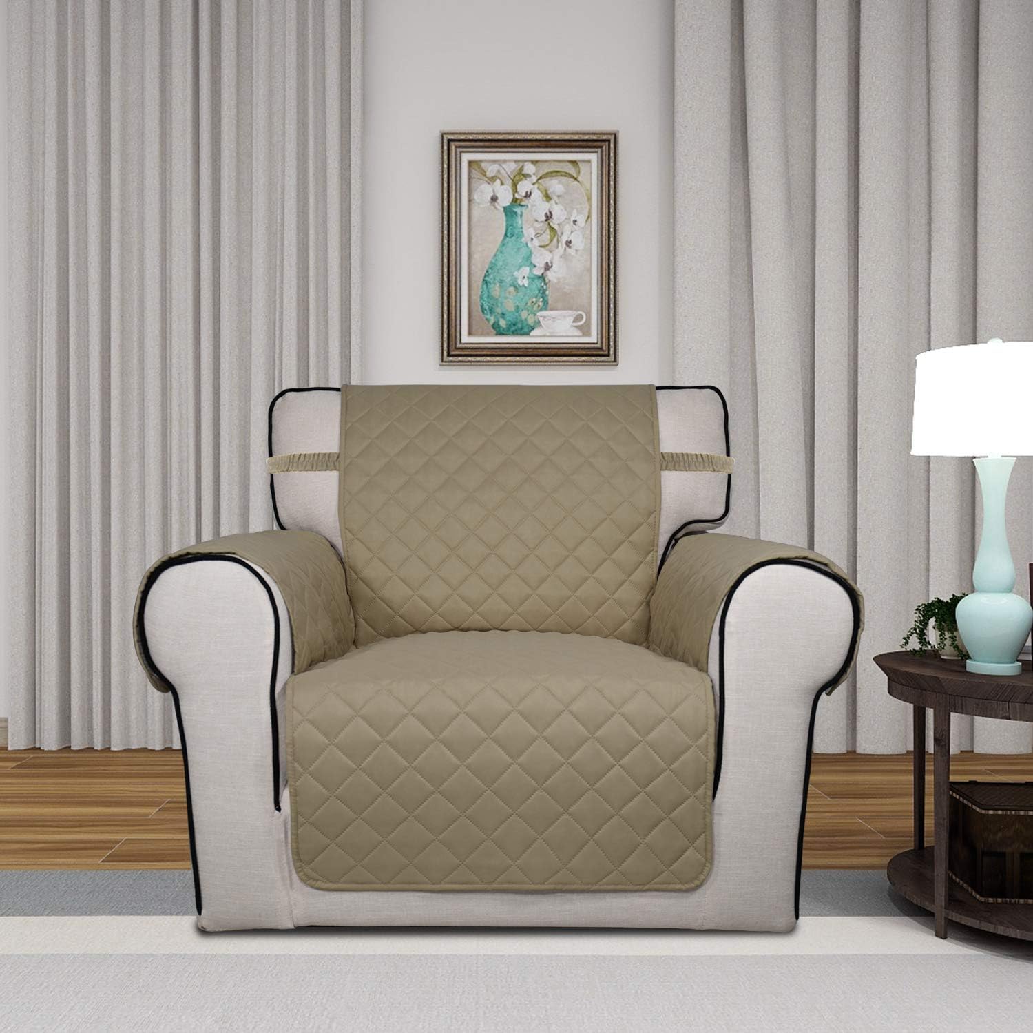 PureFit Reversible Quilted Sofa Cover, Water Resistant Slipcover Furniture Protector, Washable Couch Cover with Non Slip and Elastic Straps for Kids, Dogs, Pets (Chair, Beige/Beige)