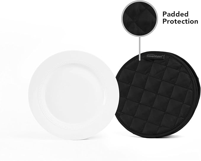 Covermates Keepsakes - Quilted Divider Set - Set of 4 - Scratch & Breakage Protection - Stain Resistant - Machine Washable - China Storage, Black