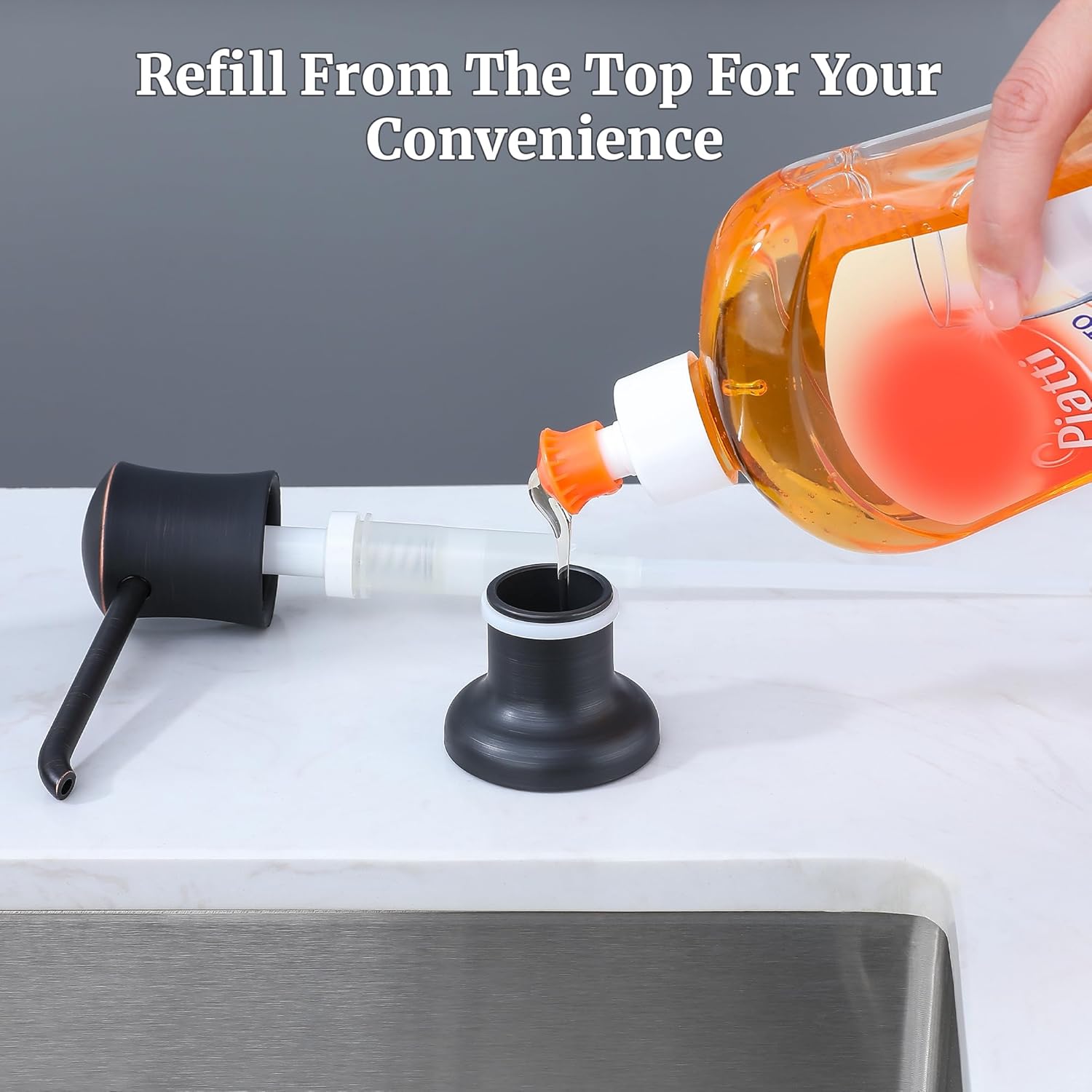 Soap Dispenser for Kitchen Sink (Oil Rubbed Bronze), Built-in and Refill-from-Top Design with Liquid Hand & Dish Soap Bottle