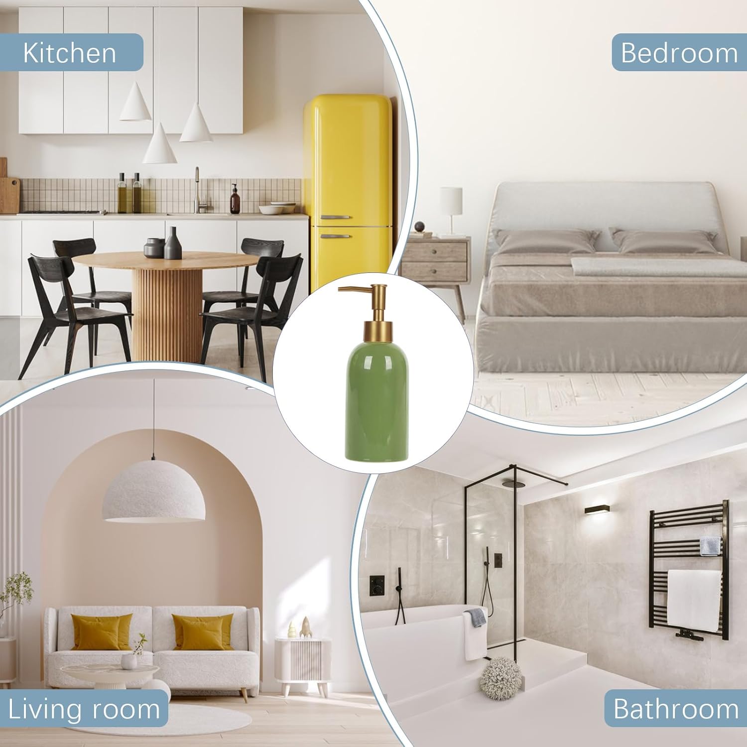 Natheeph 14OZ Ceramic Soap Dispenser Ceramic Soap Pump Dispenser Can Fill Liquid for Bathroom/Kitchen (Green)