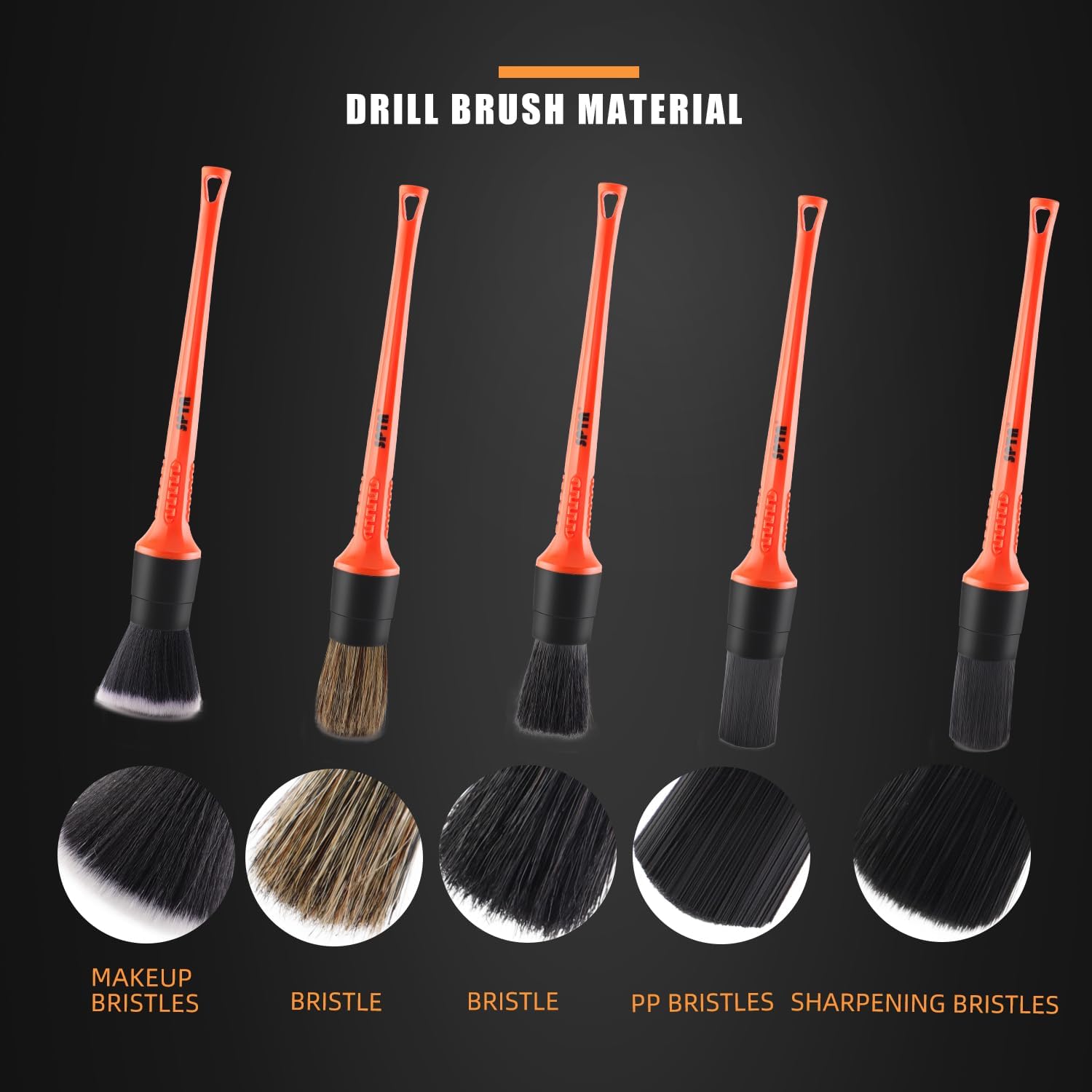 - šćWIDELY USAGEćThis kit includes 7 kinds of brushes, can clean both interior and outside of the car. They can be used on cars, trucks, motorcycles, bicycles, RVs, boats, wheels, tires, rims, spokes, grills, engine bays, exhaust tips, bumpers, vents, inner fender, wheel brake, undercarriage and much more.
