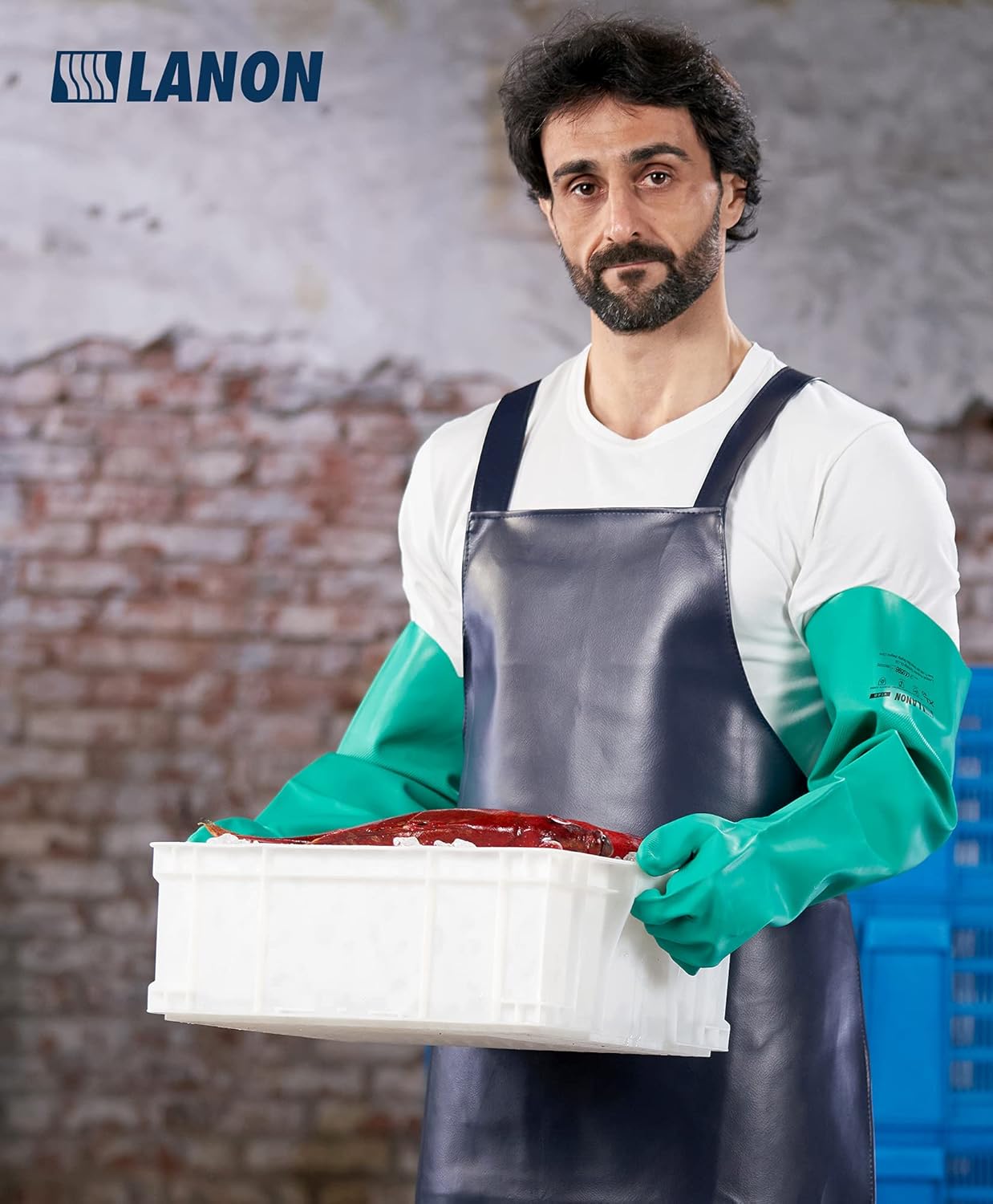 LANON Nitrile Chemical Resistant Gloves, Reusable Heavy Duty Safety Work Gloves, Acid, Alkali and Oil Protection, 18" Length, Non-Slip, Large