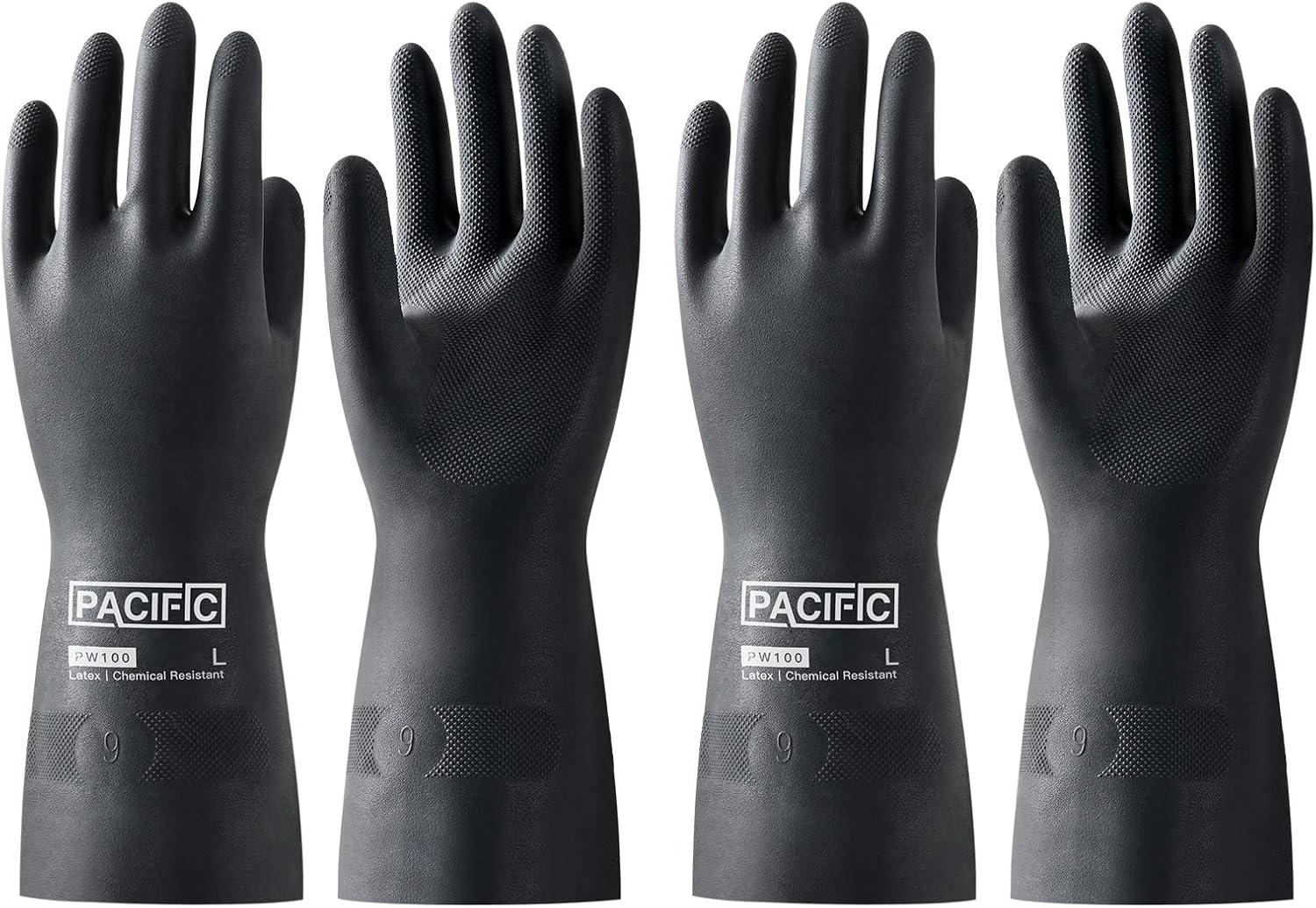 PACIFIC PPE 2 Pairs Chemical Resistant Gloves, Heavy Duty Industrial Rubber Gloves, Resist Acid, Alkali and Oil, 12.6", Large