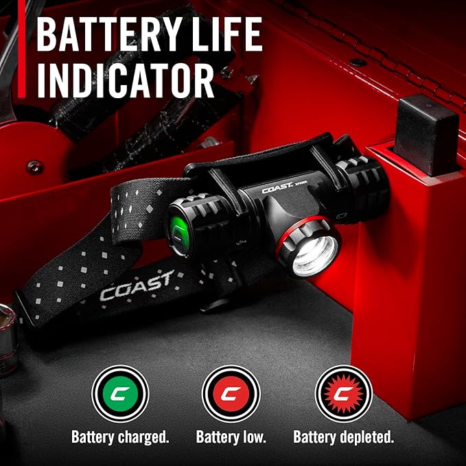 Coast XPH30R 1200 Lumen USB-C Rechargeable Dual Power Headlamp with Twist Focus Beam and Magnetic Base, Black