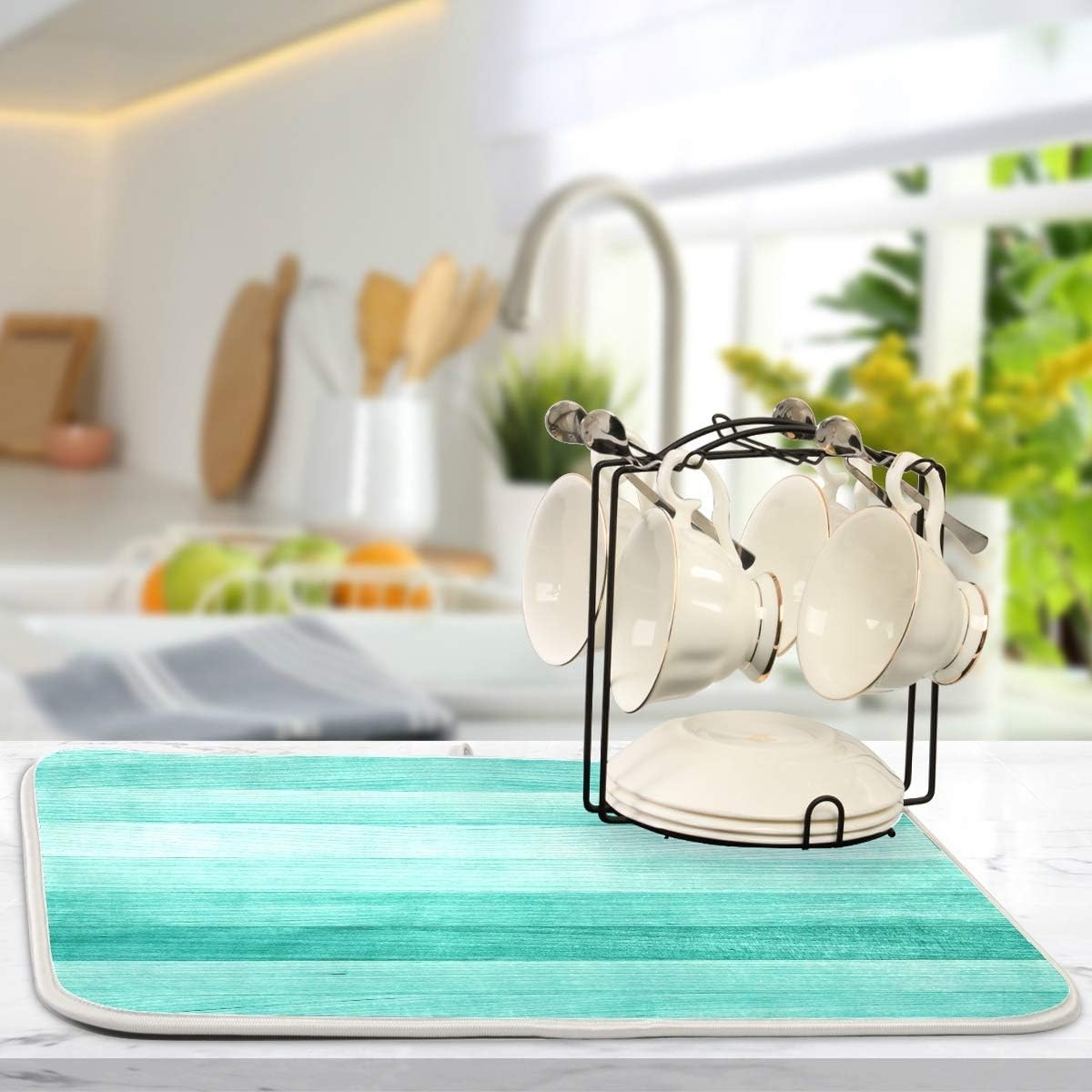 Teal Turquoise Green Wood Texture Dish Drying Mat 16x18 for Kitchen Green Blue Wooden Printing Dishes Pad Dish Drainer Rack Mats Absorbent Fast Dry Kitchen Accessories