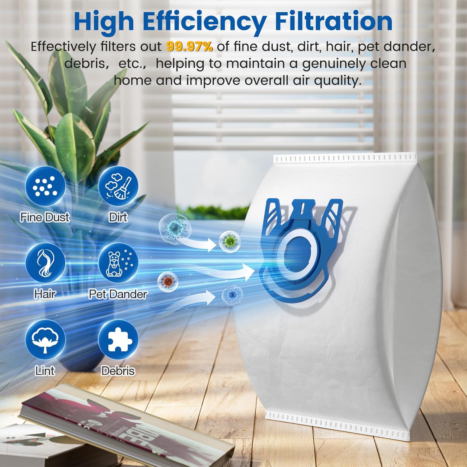 - Premium Material & Performance: The gn vacuum cleaner bag features a 5-layer micro+filtration system with higher filtration performance that captures 99.97% of dirt, hair, pet dander, etc., helping to keep your house truly tidy and improve air quality.