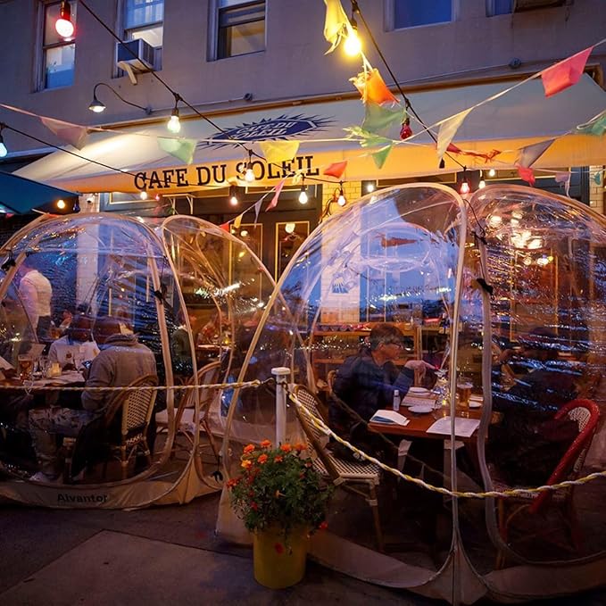- SPACIOUS AND WARM: Alvantor big bubble gazebo provides a spacious interior shelter that comfortably fits between two and three adults. Enough room to place various pieces of furniture so you can give your bubble tent a homely feeling. The four, transparent PVC windows provide 360° view of your surroundings, whilst the inside of your bubble tent stays warm thanks to the excellent heat retention.