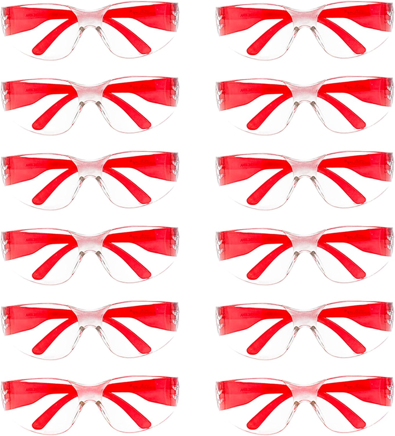- Color & One Size Fits Most β Fits adults, teens, and older children. 12 piece pack of red safety glasses. Usage can include, but is not limited to: Medical, Industrial, Dental, Construction, Janitorial, School, Daycare, College, etc.