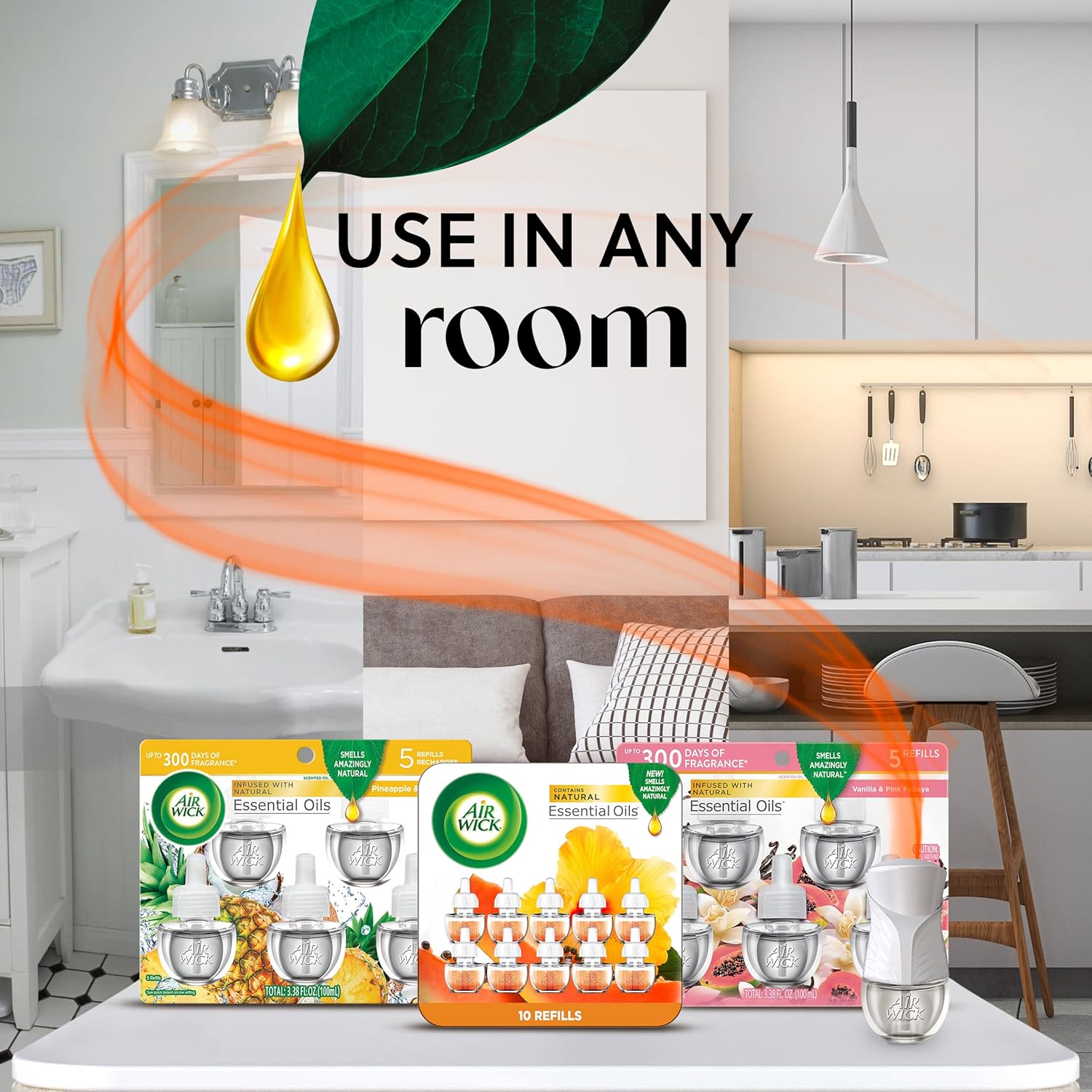 Air Wick Plug In Scented Oil Starter Kit, 2 Warmers + 6 Refills, Vanilla & Pink Papaya, Essential Oils, Air Freshener