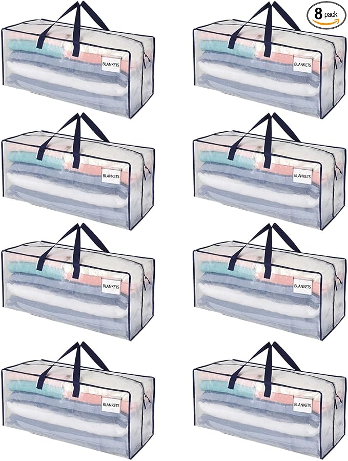 - Clear Tag Pocket & Wide Opening β Say goodbye to the frustration of searching for your belongings. Make a custom label and insert it into the clear tag pocket for easy identification of items like blankets, bedding, pillows, and clothes,. Remember to use this labeling feature for organizing college dorm room essentials, moving to a new home, or storing items in the garage. The bag is equipped with dual extended zippers, creating a wide opening that allows for effortless access to stored items.