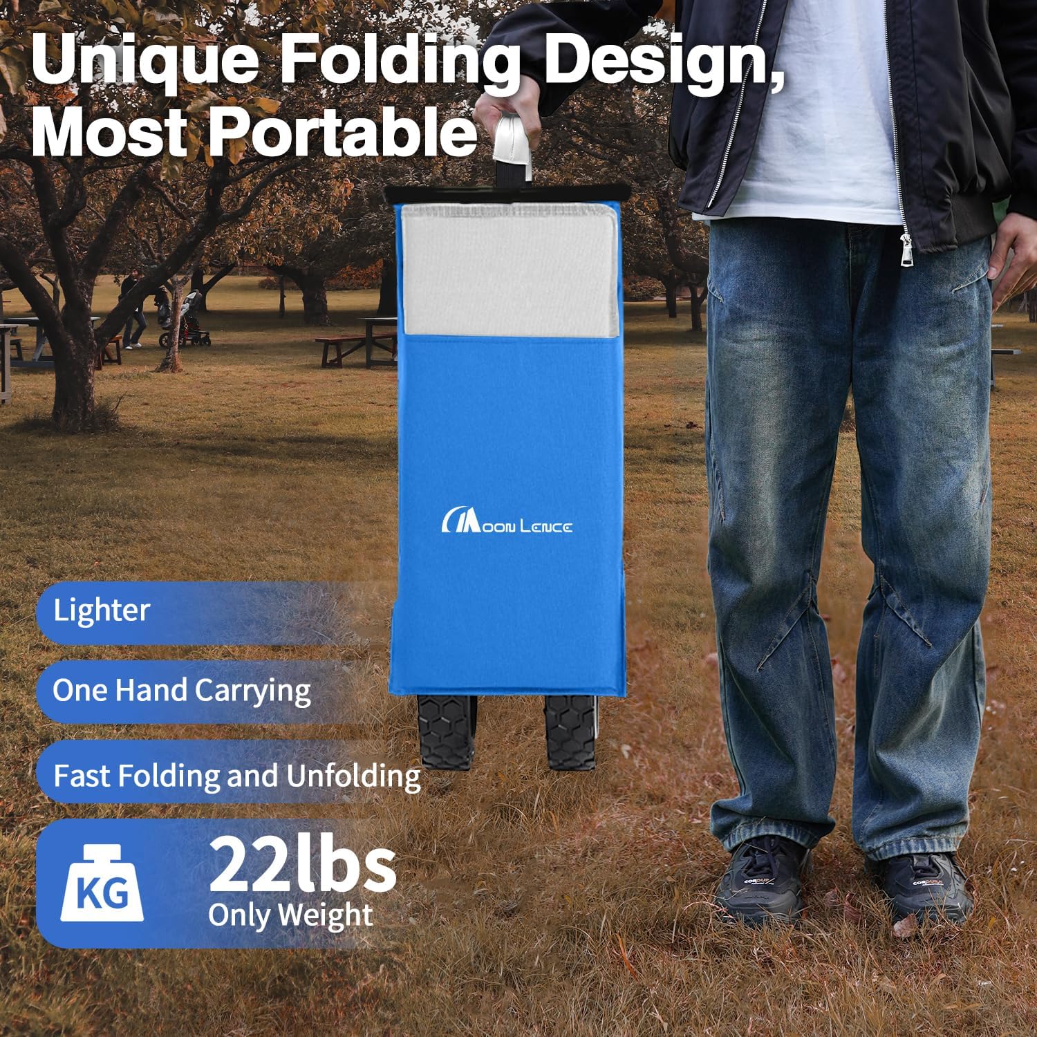 Moon Lence Collapsible Folding Wagon Cart Heavy Duty Folding Garden Portable Hand Cart with All-Terrain Beach Wheels, Adjustable Handle & Drink Holders (Blue & Ivory)