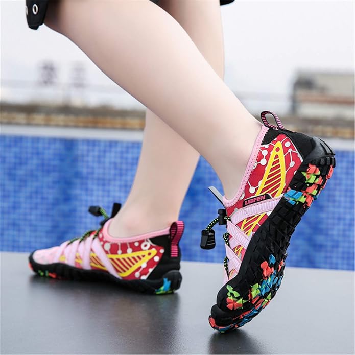 • The shoes are light and elastic, fit the feet, soft and comfortable.Quick-drying water shoes, shoes breathable, flowing water design, fast drying.