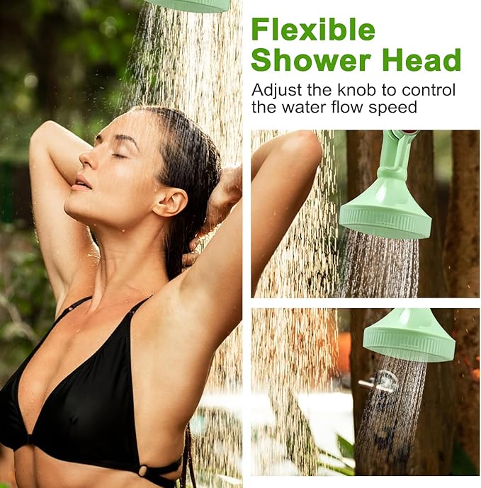 - Practical Shower & Mesh Pocket: Outdoor water shower equipped with a large shower head and soft hose, just turn the switch on the shower head to easily control the water flow and bring you a better shower experience! The front mesh pocket can hold mini travel essentials such as bath milk, shampoo, soap, facial cleanser, razor, nail clippers, etc.